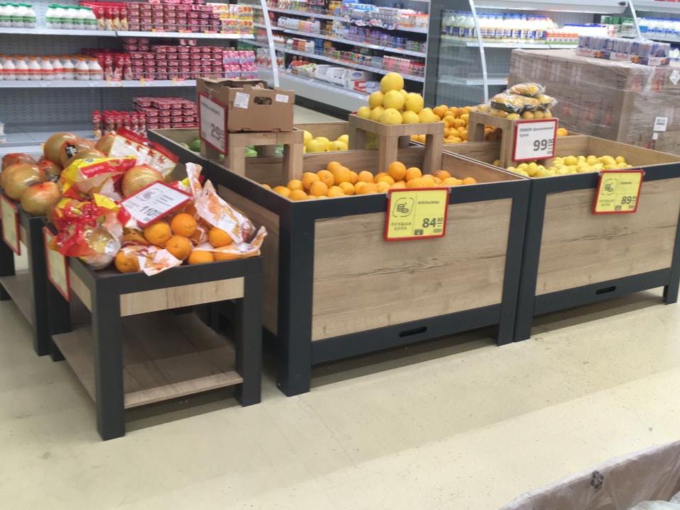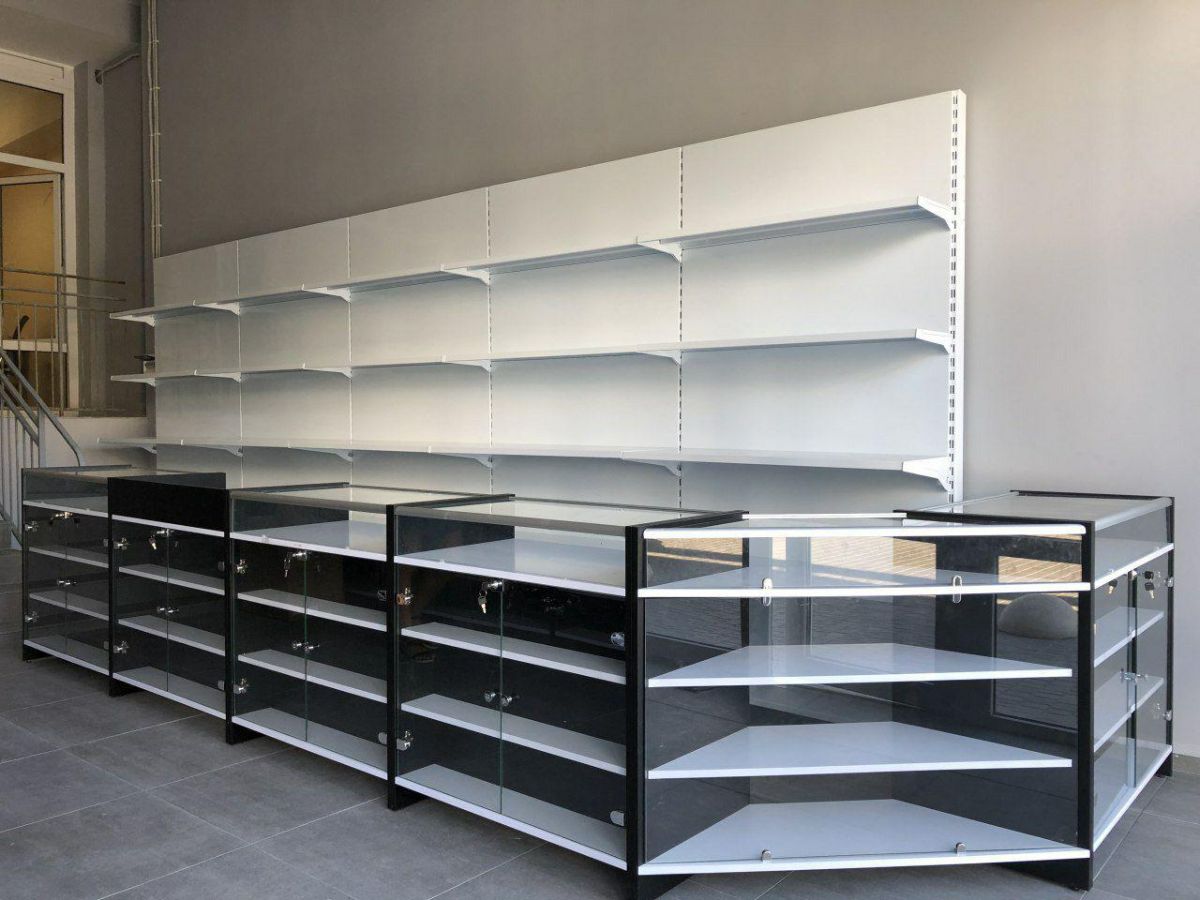 Любой формат мебели и торгового оборудования: стойки, витрины тумбы, ресепшены, стеллажи, прилавки.