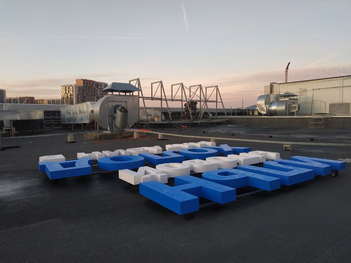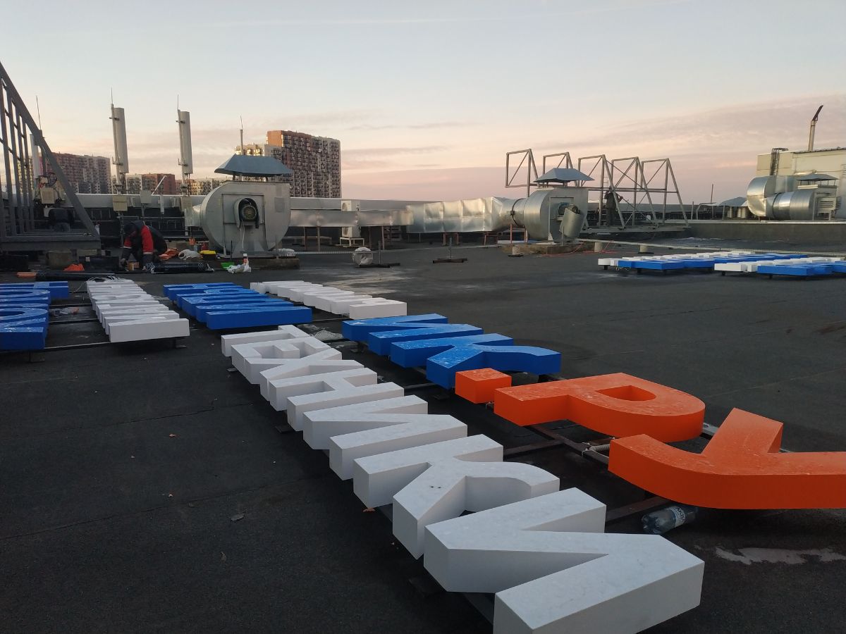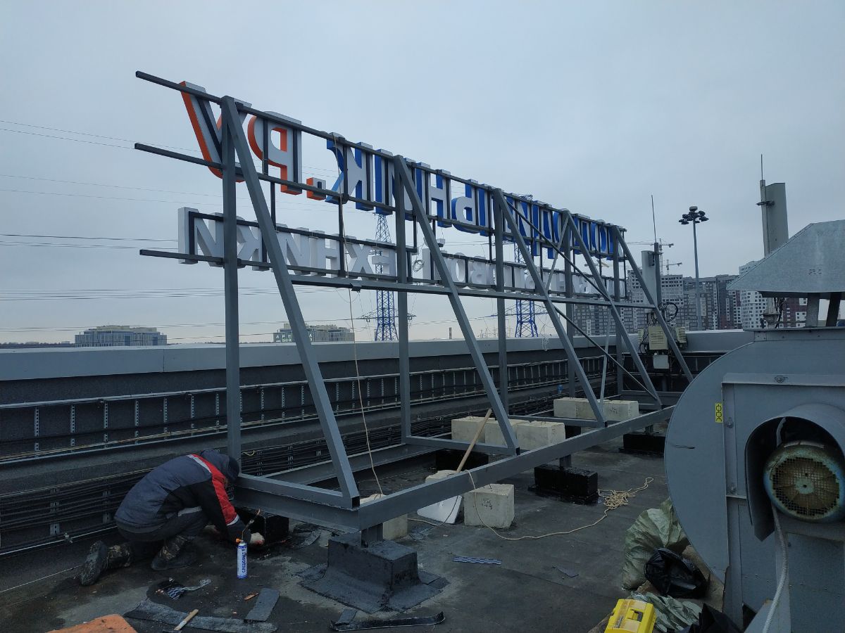 Крышные конструкции – это сложные изделие с точки зрения конструкторского, технического и производственного исполнения. Данные вывески располагаются на кровле здания. Любые крышные установки носят доминирующий характер и работают на узнаваемость бренда. В Обычно в качестве данных установок используются световые объемные буквы представляющие логотип и названии компании. Но так же могут быть и другие вариации. В процессе изготовления подобных вывесок входит серьезная подготовительная проектно-техническая работа.